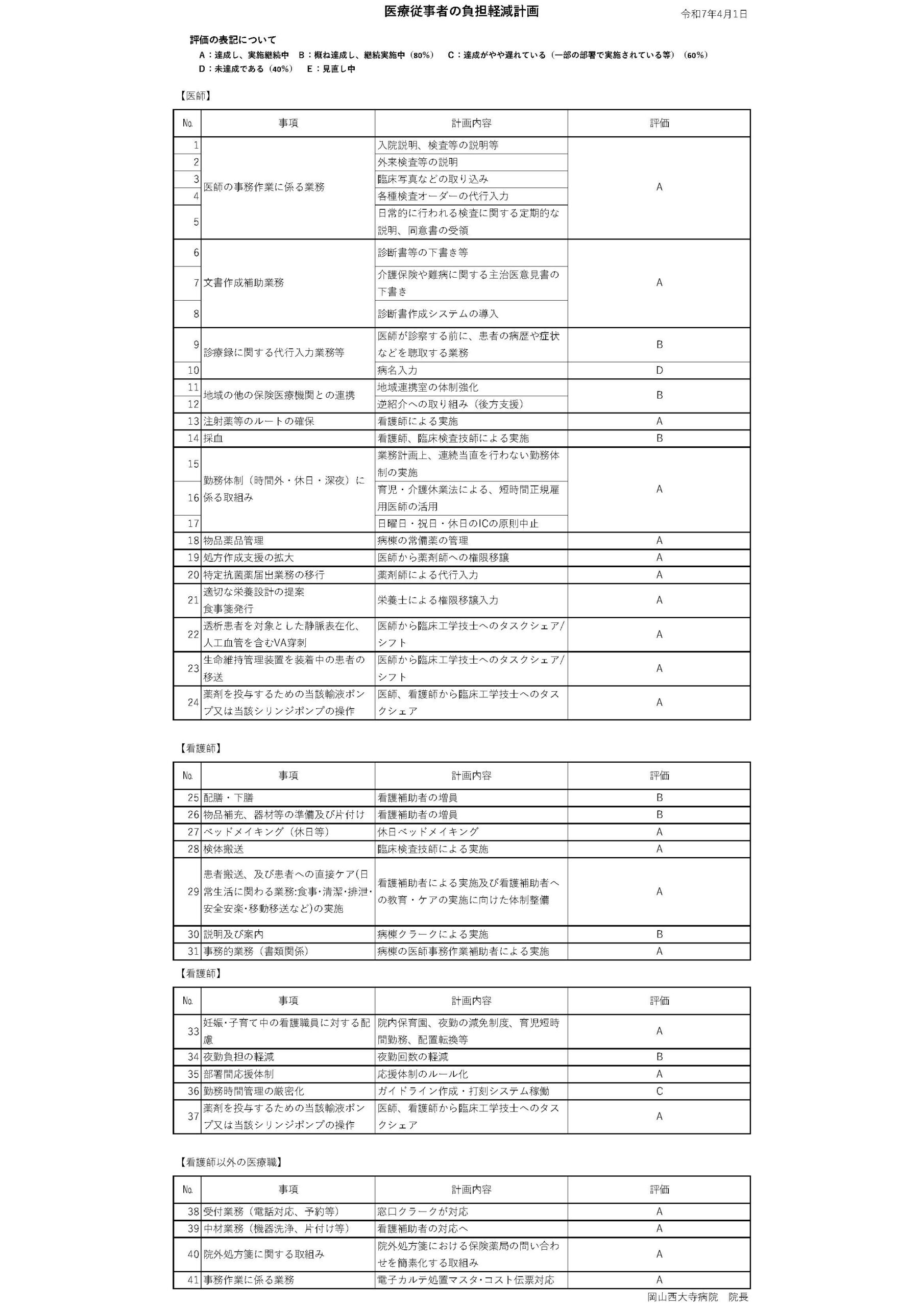 医療従事者の負担軽減計画書