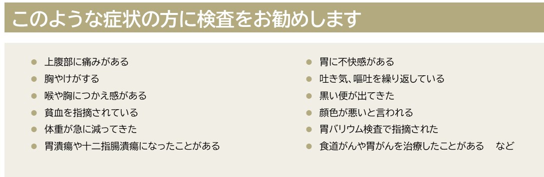 また、ピロリ菌に感染しているだけでは、症状などは出ませんが、胃潰瘍、十二指腸潰瘍、胃炎の患者さんはピロリ菌に感染している方が多く、ピロリ菌が胃や十二指腸の炎症やがんの発生に関わっていると考えられています。
