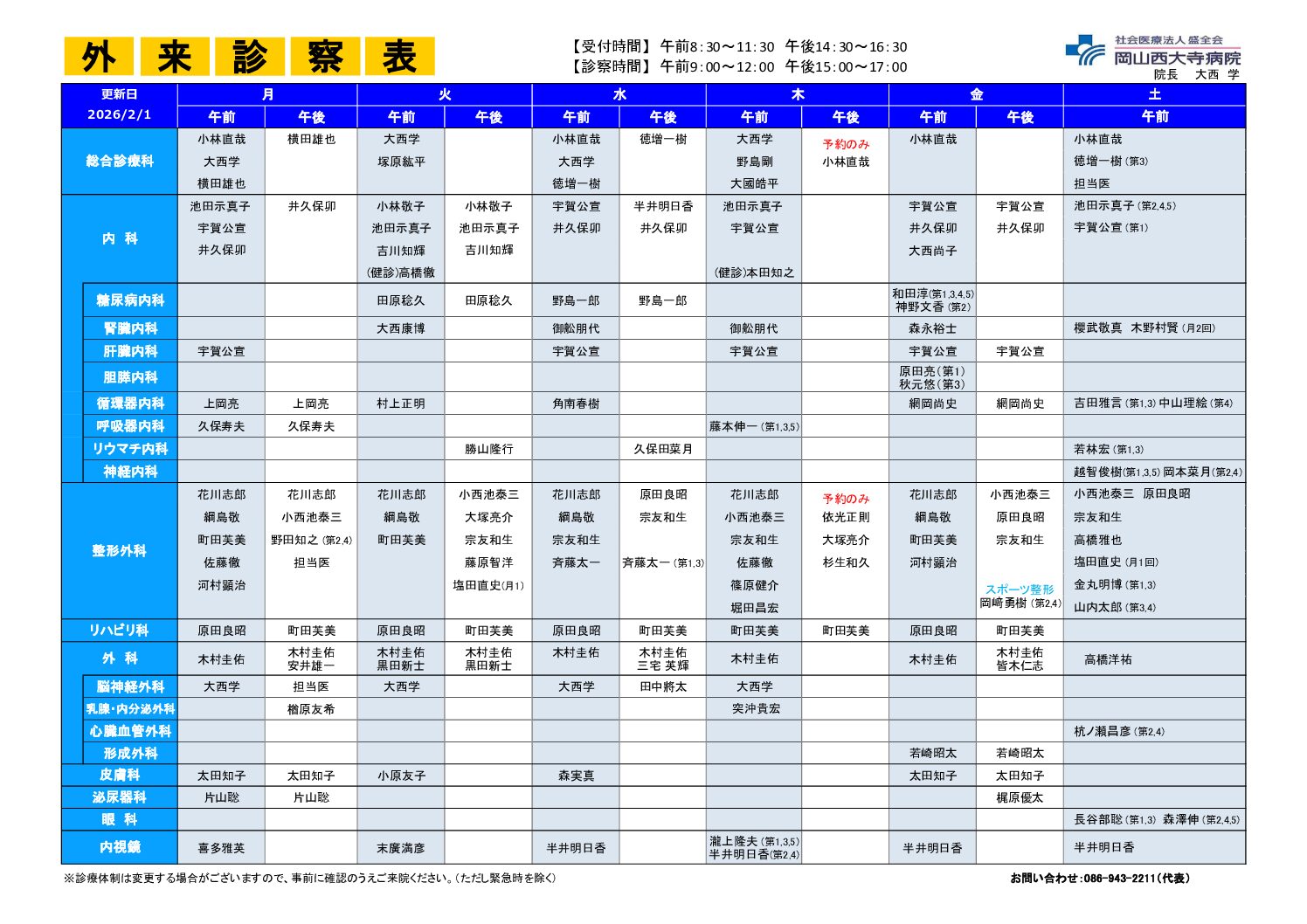 外来診療担当表